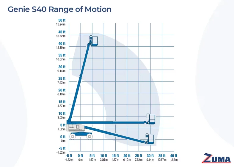 - 40 ft platform height with 31 ft horizontal reach for efficient outreach