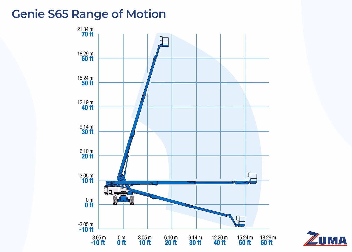 - Horizontal Reach: 56 ft outreach with smooth, stable elevation