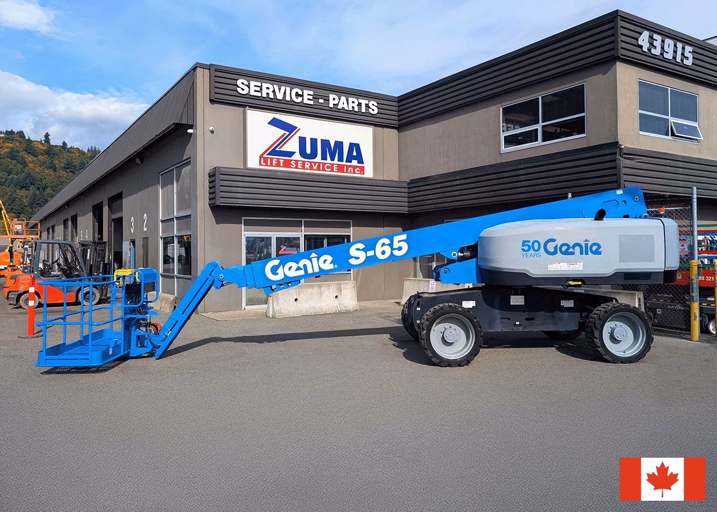 If you’re tackling outdoor construction, steel erection, or facility work that demands long horizontal outreach and dependable rough‑terrain performance, the 2016 Genie S65 delivers proven capability. With a 71 ft working height, 56 ft horizontal reach, and a diesel 4x4 drivetrain, this unit reaches tough exterior elevations with stability and control. The tri‑entry 8 ft platform gives crews room to work while maintaining excellent visibility and access. Known for rugged simplicity and uptime, Genie S‑booms are a favorite for general contractors and trades needing reliable, easy‑service machines. Foam‑filled tires, full‑time 4x4, and smooth proportional controls help your operators position fast and work efficiently across uneven ground. This 2016 unit shows 3,454 hours and has been fully serviced to Zuma’s retail‑ready standard, including a fresh annual inspection. It’s a ready‑to‑work asset suited to exterior installs, cladding, signage, and industrial maintenance at mid‑rise heights. 71 ft working height and 65 ft platform height for mid‑rise exterior access - 56 ft horizontal reach to clear obstacles and reach set‑back facades - Diesel power with 4x4 traction for rough terrain worksites - Foam‑filled tires and tri‑entry 8 ft platform for stability and workspace - 3,454 hours, serviced and inspection‑ready to minimize downtime - Retail‑ready standard: reconditioned, verified, and reliable Lease from $1259/month OAC – Available for Sale all Across Canada!