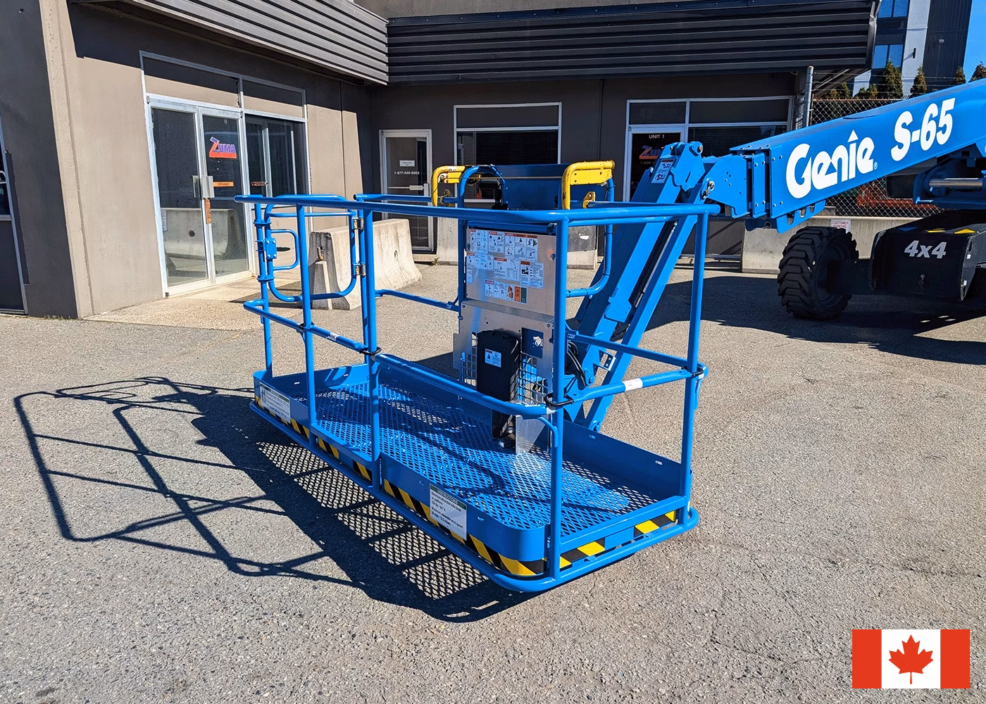 Powered by a diesel engine and equipped with foam‑filled tires and 4WD, this S-65 is built for traction and stability on uneven ground. Operators appreciate Genie’s simple controls and smooth boom function for confident positioning at height. The tri‑entry platform speeds crew access, while the 8 ft deck provides a comfortable workspace for tools and materials.