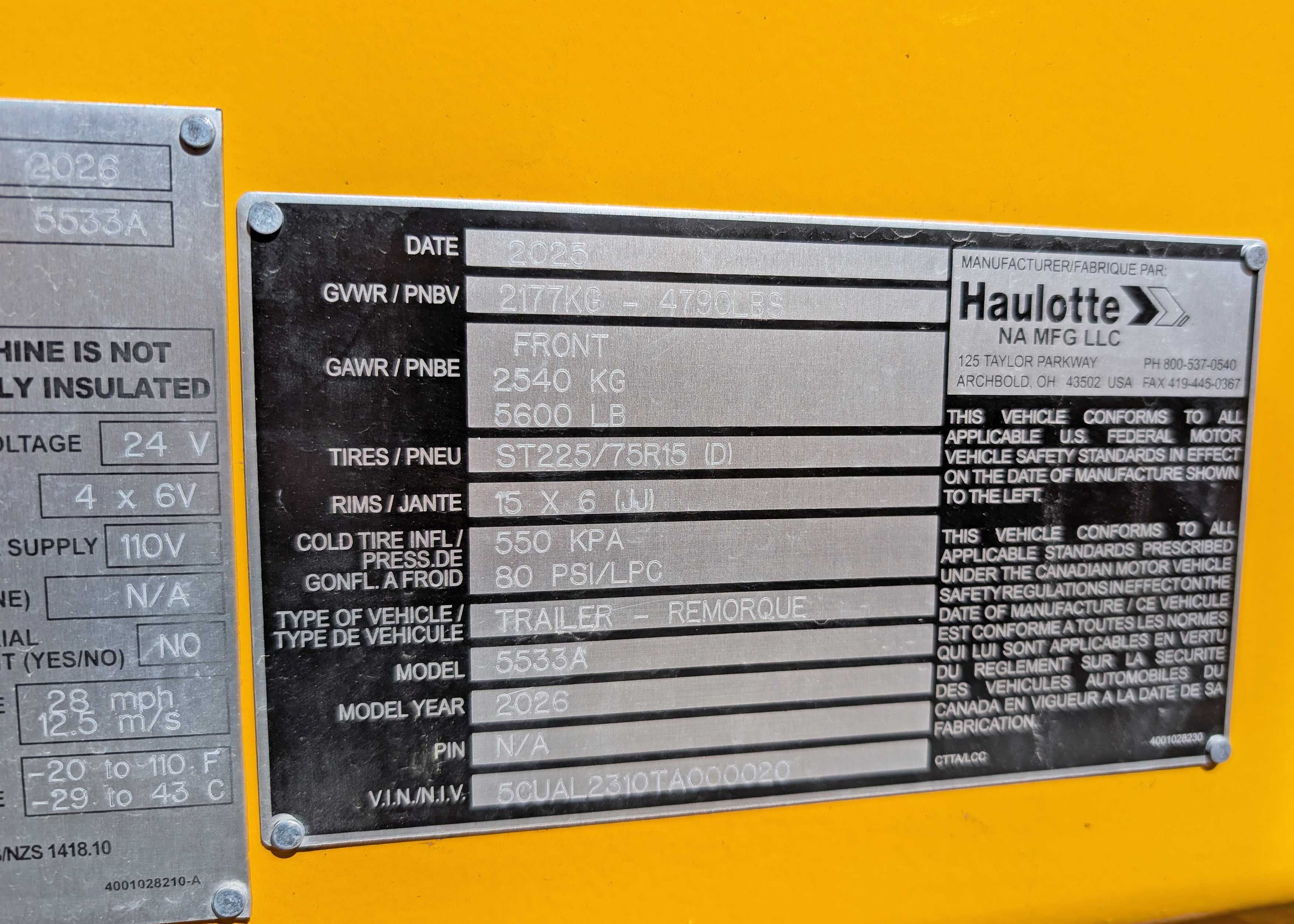 NEW 2025 Haulotte 5533A Towable Boom Lift (Eastern Canada)