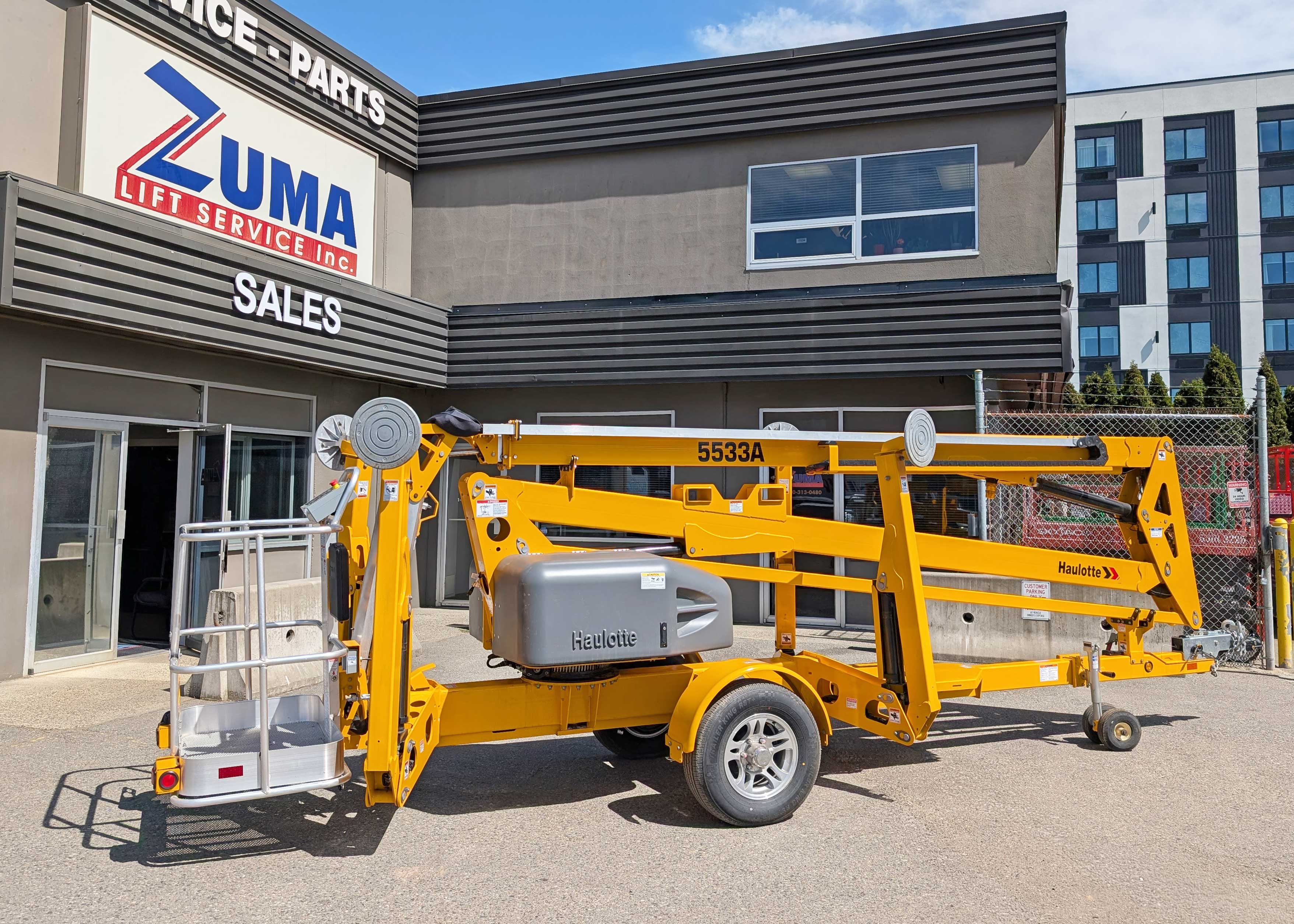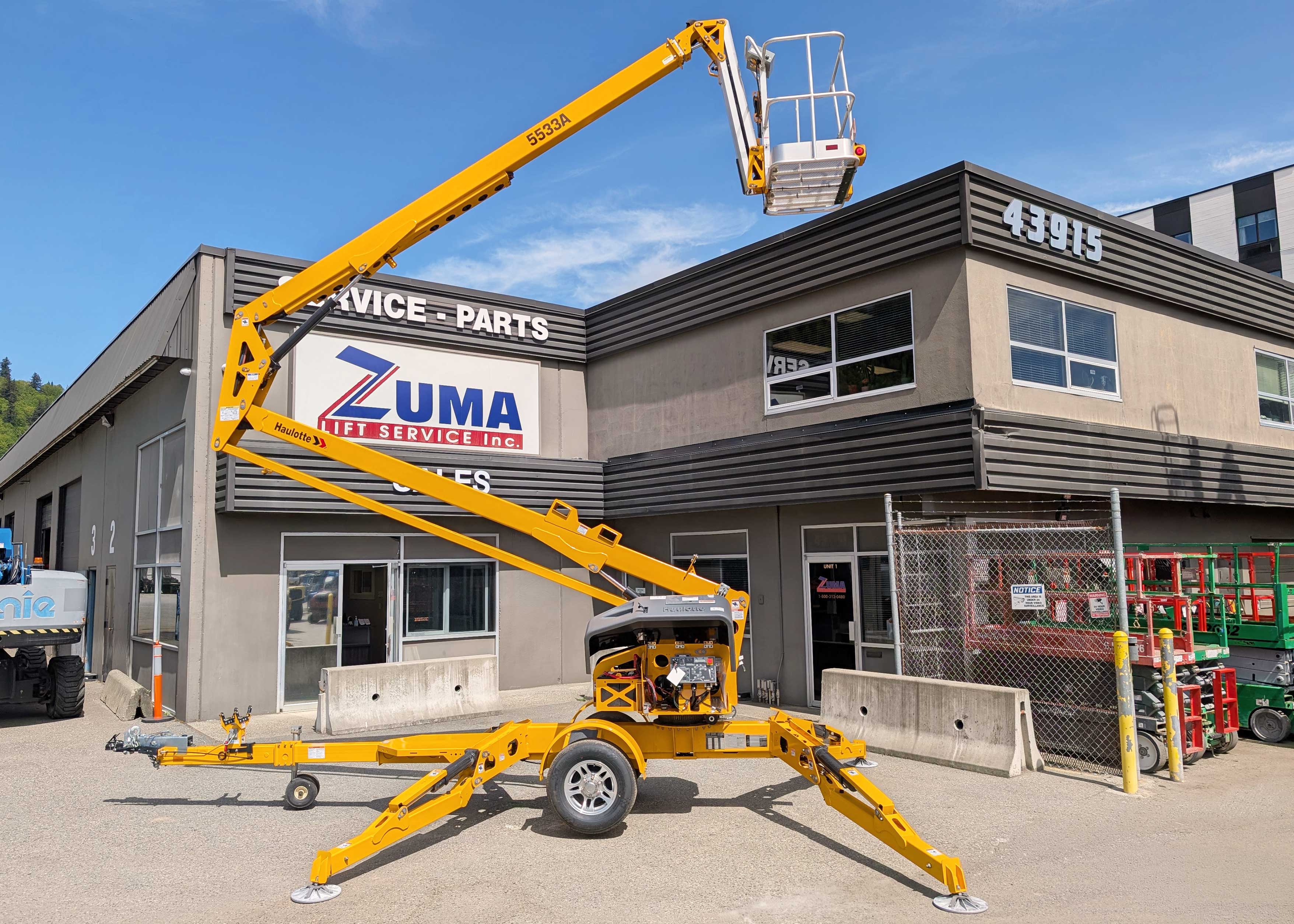 The Biljax / Haulotte 5533A Towable Boom Lift is designed for flexible aerial access, suitable for various outdoor tasks in Western Canada's diverse environments. For Sale in Canada!